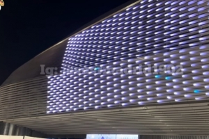 體育資訊12月13日訊 有馬德里當(dāng)?shù)夭┲鲿癯霎嬅妫蜀R主場伯納烏球場正在夜晚進(jìn)行外景的燈光測試。
