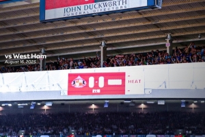 本場(chǎng)比賽桑德蘭主場(chǎng)觀眾席上分的比分牌上并未展示出紐卡的隊(duì)徽,而僅僅是以英文visitors(客隊(duì))替代。