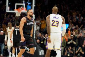 狄龍起身后,撞擊詹姆斯。狄龍技術犯規(guī),遭驅逐出場