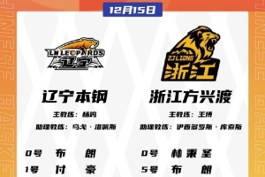體育資訊12月15日訊 今晚7點(diǎn)35分,遼寧男籃將在主場(chǎng)對(duì)陣廣廈男籃。