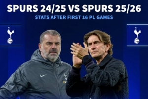 熱刺在近2賽季英超前16輪戰(zhàn)績: