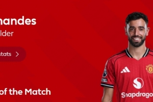 本場比賽B費(fèi)傳射建功發(fā)揮出色,賽后他也當(dāng)選英超官方評選出的本場最佳球員。