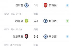 本場(chǎng)過后,切爾西5輪僅1勝積29分,落后榜首阿森納7分,身后4隊(duì)26分。