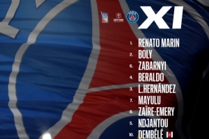 巴黎首發(fā):1-雷納托·馬林、2-大衛(wèi)·博利、6-扎巴爾尼、4-貝拉爾多、3-盧卡斯·埃爾南德斯、7-馬尤盧、8-扎伊爾·埃梅里、5-恩賈恩圖、10-登貝萊、9-貢薩洛·拉莫斯、11-杜埃