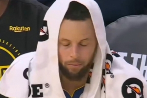 GIF-勇士失誤被打反擊2+1 庫里在替補席無奈