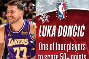 官推寫道:歷史上只有四位球員在圣誕大戰(zhàn)砍下50+,東契奇就是其中之一。