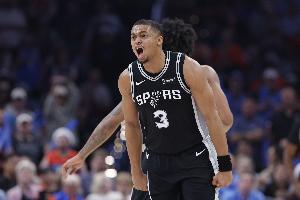 馬刺球員凱爾登·約翰遜上半場表現(xiàn)出色,他替補登場首節(jié)3中3幫助球隊建立領(lǐng)先,第二節(jié)在球隊得分不力的情況下單節(jié)拿到7分沒有讓分差繼續(xù)拉大。