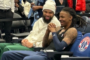 而今天,灰熊客戰(zhàn)奇才。在本場(chǎng)比賽之前,狄龍現(xiàn)身球場(chǎng),和前灰熊隊(duì)友莫蘭特寒暄。