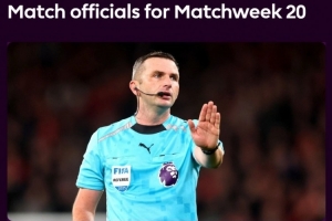 體育資訊12月30日訊 英超官方公布聯(lián)賽第20輪各場裁判,奧利弗將執(zhí)法曼城vs切爾西。