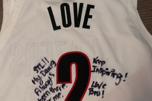 樂(lè)福在球衣上面寫(xiě)著:“圣路易斯!我的兄弟,一直都支持著我,希望你繼續(xù)激勵(lì)大家!家鄉(xiāng)英雄!”