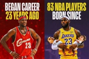 據(jù)統(tǒng)計,目前NBA中有83名球員在勒布朗·詹姆斯于2003年10月30日完成職業(yè)生涯首秀時甚至還沒有出生。