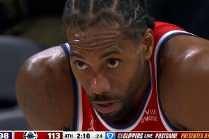 比賽末節(jié)8分56秒,小卡上籃時被小克萊頓掃到了面部打出了血,但是爵士居然挑戰(zhàn)成功了,結果變成了小卡被帽、快船出界;