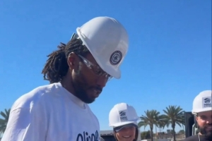 快船全員今天參加社區(qū)活動(dòng),官推曬出視頻,一位小女孩問(wèn)小卡身高,后者回答6英尺7英寸(約2米01)。