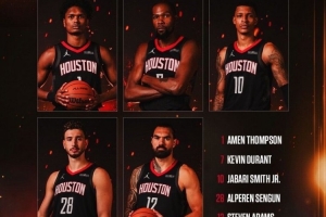本場(chǎng)火箭排出了一套“五大”首發(fā):阿門、杜蘭特、小史密斯、申京、亞當(dāng)斯。