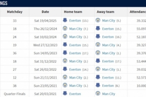 體育資訊10月18日訊 英超第8輪,曼城主場(chǎng)對(duì)陣埃弗頓。雙方近10次交手,曼城8勝2平保持不敗,進(jìn)23球失3球。