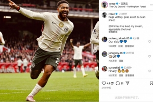 體育資訊10月18日訊 今天,切爾西在英超3-0擊敗諾丁漢森林,里斯-詹姆斯賽后在Instagram發(fā)文,慶祝個(gè)人藍(lán)軍生涯200場(chǎng)里程碑。