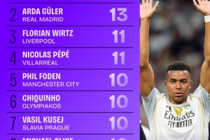 體育資訊10月23日訊 Squawka統(tǒng)計了本賽季歐冠目前為止的創(chuàng)造機(jī)會排行榜,姆巴佩位列第一,隊友居萊爾第二,維爾茨第三。