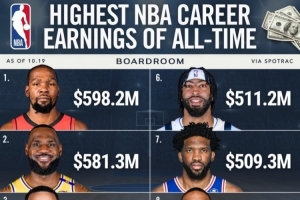相關(guān)新聞>>>NBA歷史總薪資TOP10均為現(xiàn)役球員!杜蘭特第一 7人已超5億美元