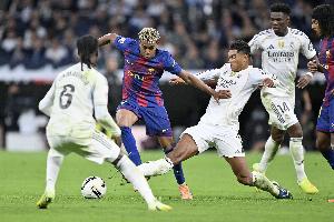 3-比賽開(kāi)始前23分鐘,位于伯納烏南看臺(tái)中部區(qū)域,名為“Grada FANS RMCF”的一群主場(chǎng)球迷,再次齊聲并有組織地唱響了約10秒鐘的相同口號(hào):"Olelé, olalá,身為巴薩球迷就是,是個(gè)弱智"。