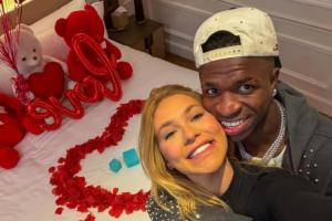 體育資訊10月28日訊 皇馬邊鋒維尼修斯近期陷入國家德比被換下時(shí)情緒爆發(fā)的爭議中,但他在情場上可謂春風(fēng)得意:他在社媒曬出與女友弗吉尼亞的甜蜜合照,為女友營造了浪漫的鮮花氛圍。