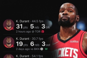 據統(tǒng)計,杜蘭特火箭生涯4場比賽得分破百,隊史第二快,僅次于哈登(3場)。
