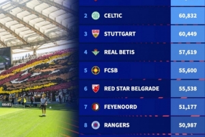 體育資訊9月24日訊 德轉盤點了本賽季歐聯(lián)杯參賽球隊主場最大可上座人數(shù)榜單,其中羅馬主場居首,具體榜單如下: