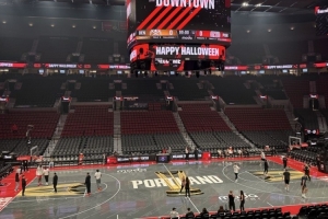 賽前,開拓者跟隊中文記者Victor Sun分享開拓者主場地板,并寫道:“NBA杯遇上萬圣節(jié)?!?/p>