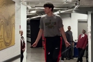相關(guān)新聞>>>今天有機會嗎?楊瀚森賽前熱身秀各種扣籃 三分球也信手拈來