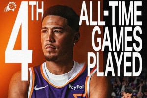 此役,布克首發(fā)。據(jù)統(tǒng)計(jì),這是布克太陽生涯第686場比賽,超越迪克·范阿斯代爾(685),升至隊(duì)史第4多。