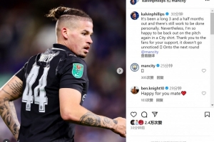 “但很高興能夠身披曼城球衣重返賽場,感謝球迷們的支持,這份心意我銘記于心,晉級下一輪!”