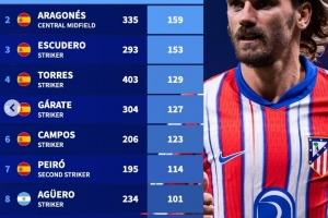 體育資訊10月1日訊 在本輪歐冠馬競5-1擊敗法蘭克福的比賽中,格列茲曼打進(jìn)個人馬競生涯第200球。德轉(zhuǎn)也盤點了馬競隊史射手榜,其中格列茲曼居首,具體如下: