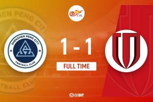 上半場比賽結束,深圳新鵬城1-1成都蓉城。