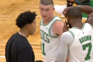 GIF-杰倫·布朗點起布萊克造殺傷,自己隱形眼鏡掉地上了,又自己按上