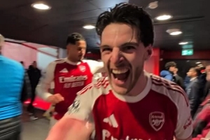 阿森納官方更新社媒動(dòng)態(tài),曬出賽后球員通道的視頻,槍手球員們在回到更衣室的路上慶祝勝利。