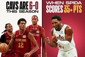 據(jù)統(tǒng)計,這是米切爾本賽季至今第6次單場至少砍下35分,在這6場比賽中,騎士隊保持全勝。而騎士本賽季的戰(zhàn)績則是12勝6負(fù)。