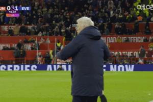 英超第12輪,埃弗頓客場少打一人1-0擊敗曼聯(lián),主帥莫耶斯賽后慶祝