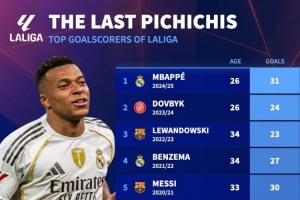 體育資訊11月25日訊 姆巴佩領取上賽季皮奇奇獎(馬卡報頒發(fā)的西甲金靴),德國轉會市場盤點了近10年皮奇奇獎得主,梅西連續(xù)5年獲獎。