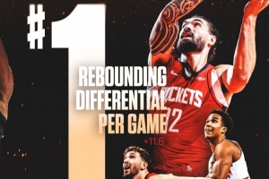 火箭目前場均凈勝對手11.6個籃板,聯(lián)盟第一。場均進(jìn)攻籃板數(shù)為16.2個。