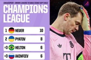 體育資訊11月27日訊 在本輪歐冠,阿森納3-1擊敗拜仁,諾伊爾出擊失誤導(dǎo)致丟球。數(shù)據(jù)網(wǎng)站OPTA也盤點了自2011年9月以來歐冠賽場門將因失誤導(dǎo)致丟球榜單,具體如下: