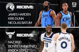 森林狼得到:哈登、克里斯·鄧恩、巴圖姆;