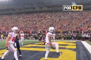 體育資訊11月30日訊 今日俄亥俄州立大學橄欖球隊外接手布蘭登·伊尼斯在對陣密歇根大學的比賽中完成達陣。