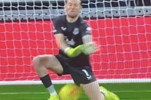 這次撲救中,皮克福德疑似閉眼導(dǎo)致出現(xiàn)下蛋失誤,引發(fā)球迷群嘲。丟球后,皮克福德懊惱跪地,無奈搖頭苦笑,并與隊(duì)友進(jìn)行了一番交流。