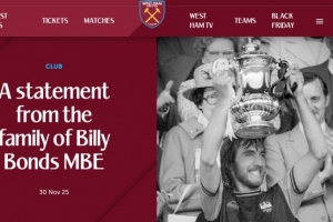 西漢姆聯(lián)俱樂(lè)部懷著深切的悲痛和無(wú)比沉重的心情,發(fā)布這位傳奇球員、教練和主教練比利·邦茲的家族聲明: