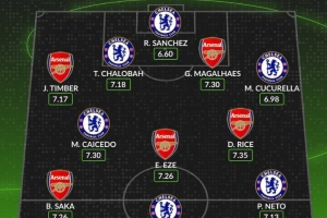 體育資訊11月30日訊 本輪英超焦點(diǎn)戰(zhàn)阿森納對(duì)陣切爾西即將打響,數(shù)據(jù)網(wǎng)站W(wǎng)hoscored也盤點(diǎn)了本賽季英超兩隊(duì)隊(duì)員場(chǎng)均評(píng)分最高陣,具體如下: