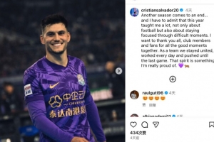 體育資訊12月1日訊 2025中超聯(lián)賽已落下帷幕,最終天津津門(mén)虎排在聯(lián)賽第6位。津門(mén)虎外援薩爾瓦多在社媒發(fā)文,對(duì)賽季進(jìn)行總結(jié)。
