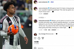 麥肯尼寫(xiě)道:“在這里的200場(chǎng)比賽!!這段旅程很漫長(zhǎng),但我不會(huì)用任何東西去交換!這家俱樂(lè)部給了我太多!Forza Juve??!”