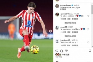 此役阿爾瓦雷斯為馬競踢滿全場,但只有1次射門,賽后他在社交媒體上曬出比賽照片,配文:“抬起頭來,戰(zhàn)斗繼續(xù)?!?/p>