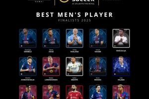 環(huán)足獎2025年最佳男足球員候選:姆巴佩、哈蘭德、登貝萊領(lǐng)銜