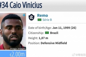 根據(jù)德轉(zhuǎn)顯示,球員在場(chǎng)上司職后腰,上賽季共出戰(zhàn)了28場(chǎng)巴乙聯(lián)賽,打進(jìn)5球助攻2次,目前德轉(zhuǎn)身價(jià)為200萬歐。