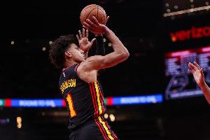 根據(jù)數(shù)據(jù)統(tǒng)計,杰倫·約翰遜是老鷹隊史上第一位做到單場比賽至少15分15籃板15助攻的球員。
